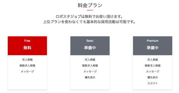 現在、求人の掲載費用及び成果報酬など、一切の費用を頂いておりません。ロボスタジョブで人材採用を進めてみませんか?(※今後リリースする「優先表示機能」や「スカウト機能」を利用する際には別途費用がかかります)