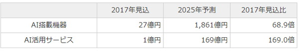 サービス事業者にとっては競合サービスとの差別化や高付加価値化が訴求でき、また、ユーザーにとってはデータ解析の自動化や省力化による業務効率化や人的コスト削減が図れることから、中長期的にAI技術は様々なサービスで導入されていくと同社はみている。