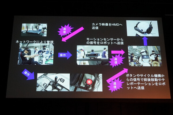 Pepperに接続された各種デバイスと、人が乗り込む装置とが連動することでPepperに乗り移った体験ができるのです。プレゼンテーションでは、今年の夏に開催された「Maker Faire Tokyo 2017」での展示の模様の映像も流れましたが、人がPepperを操作することで、まるでPepperが本当に生きているようになり、且つ周りの人のコミュニケーションが一段と楽しくなるというものでした。まさに新たな「UX」を体験できるものです。