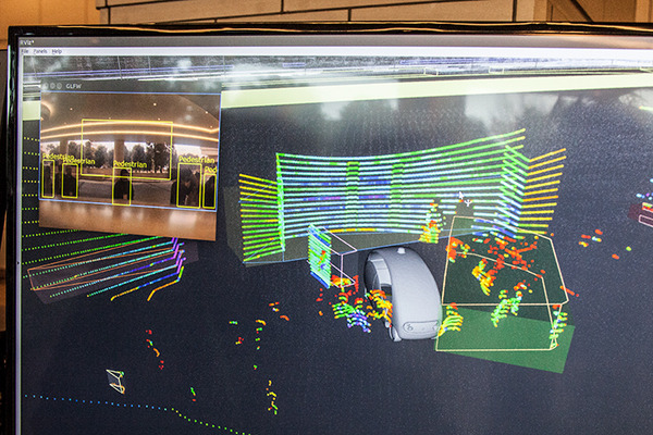 展示場では、カメラ画像とLIDARの画像が両方、モニタに表示されていた。
