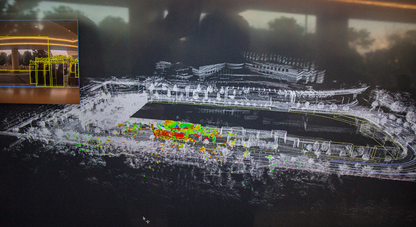 周囲一帯が3次元の点群情報でマップを持っている。それに対してLIDARの情報によって、自車のマップ上の位置を把握している。