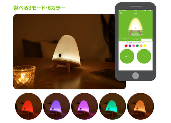 また、このペトコはルームライトとしても使うことができる。「障子からのぞく優しい光」をモチーフにして作られたという、温かみある光で照らすことができ、紫や緑など6色に照らすことが可能だ。