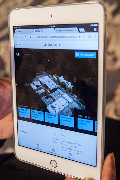 協業の具体的なケースとして報道された内容のもうひとつのトピックはドローンへの活用だ。現場の作業の進捗をはかるのにドローンによる空中撮影が既に活用されはじめ、ドローン測量自体は珍しいものではなくなっている。