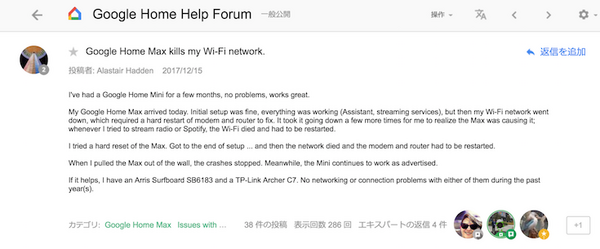 もっともGoogle Home Maxは日本では発売されていないため、日本でこの問題は起きているユーザーはいないだろう。