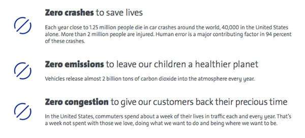 GMは Zero Crashes,(事故ゼロ)、Zero Emissions(排気ガスゼロ)、Zero Congestion(混雑ゼロ)をミッションに掲げ、これを実現するのが自動運転と電気自動車というわけだ。