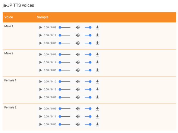日本語の音声合成に使う4種類(男性2種類、女性2種類)の音声データが更新され、より自然な発音になった。