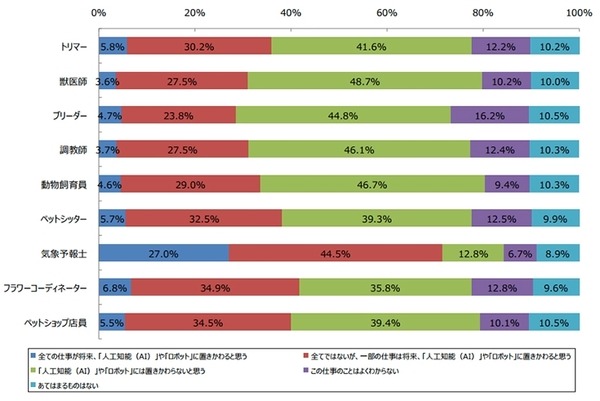 ・動物や自然関連の各職業が、将来、人工知能に置きかわるかについて考えを教えてください。