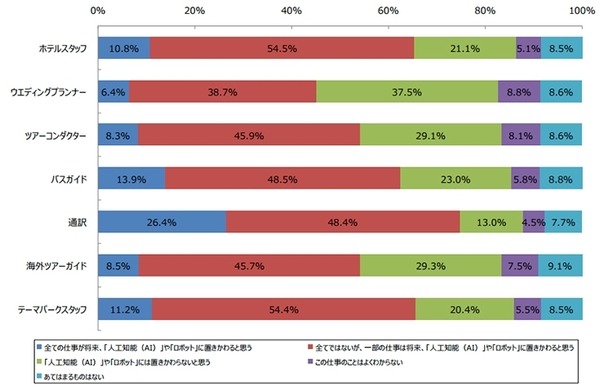 ・ホテルや旅行関連の各職業が、将来、人工知能に置きかわるかについて考えを教えてください。