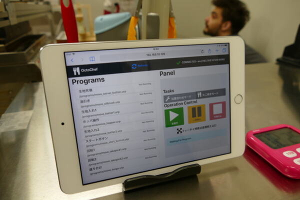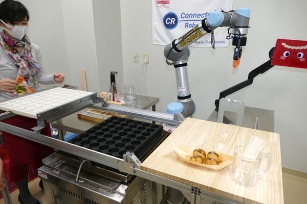 2017年8月に東京ビッグサイトで行われた「Maker Faire Tokyo 2017」で、ロボットでたこ焼きを焼いているブースがあった。コネクテッドロボティクス株式会社(https://connected-robotics.com/)だ。たこ焼きロボットの名前は「OctChef」。産業用ロボットの技術を持っており、調理業界への参入を検討しているとのことだった。