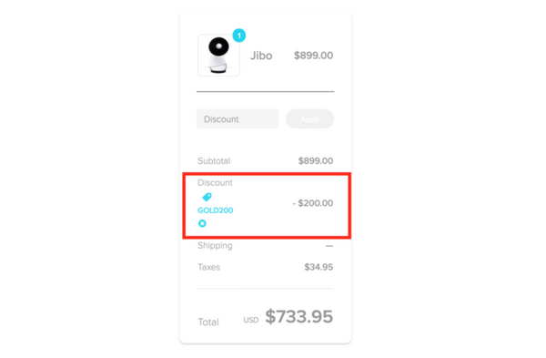 「Olympic Promo」と題したキャンペーンで、Jibo購入時にクーポンコード「GOLD200」と入力すると200ドル引きになる。
