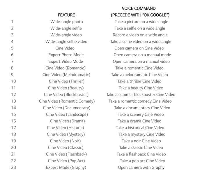 この機能はGoogle AssistantにLGが独自に32種類のコマンドを追加したもので、スマートフォンの特定機能を直接実行できるというもの。
