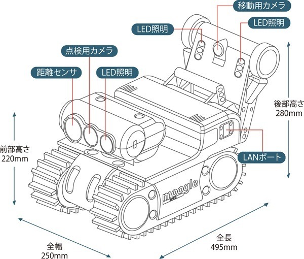 同製品は、2008年10月にロボット事業推進室を立ち上げている同社が、これらの点検に対応できるよう、2012年に発売した「moogle」に新機能を搭載し、橋梁や共同溝などでの効率的なインフラ点検のサポートを可能にしたものだ。