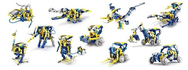 T-レックス、ゾウ、ワニ、サル、ダチョウ、サソリ、プテラノドン、犬のさんぽ、ショベルカー、フォークリフト、ローバー、バギー。12種類の動物やメカに変形するロボット工作キット。ロボットの動きや形状は実際の動物やメカの特徴に似せてあり、モーターとギア、機構で丁寧に再現する。動力は太陽電池と水圧のダブルパワー。歩いたり、走ったり、羽ばたいたりするロボットのコミカルな動きに注目したい。