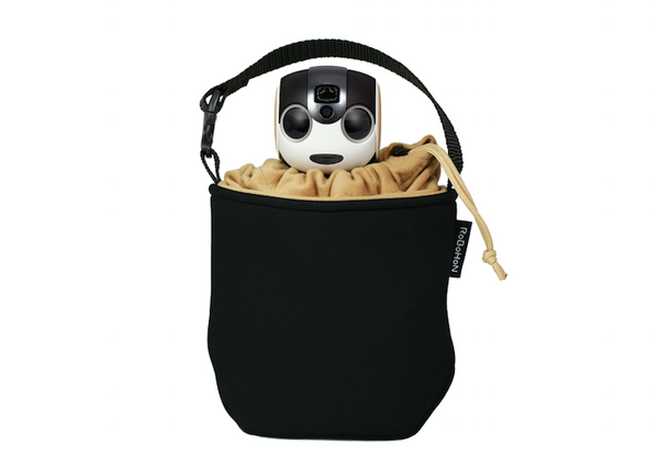ロボホン専用の巾着型キャリングケース。首からぶら下げるのではなく、鞄などに取り付けて使うのにピッタリなタイプ。ロボホンの頭だけを出したり、完全に収納するなどの使い分けが可能。