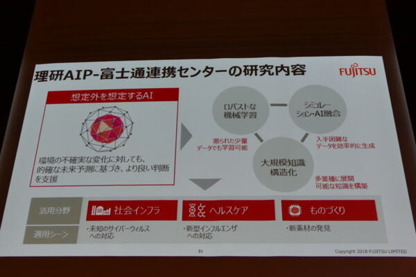 また理化学研究所 革新知能統合研究センター(理研AIP)とは、不確実な変化に対してもよりよい判断ができる「想定外を想定するAI」の研究を行っているという。