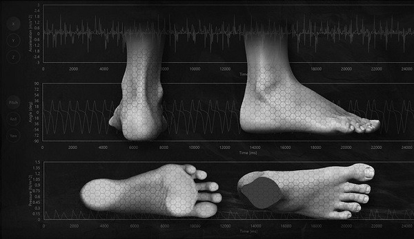 解剖学的スキャンとセンサー・データを組み合わせることで製作した3D足型計測器はわずか30秒で足を立体的に計測し、着用可能なセンサーは着用者が実際に靴を履いた時の正確な動きを再現する。