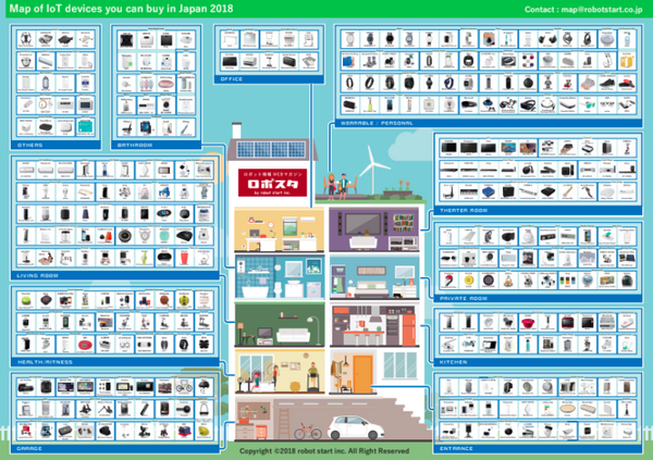ロボットビジネスを専門に行うロボットスタート株式会社は、日本で購入が可能なIoTデバイスを可視化した「IoTデバイスマップ2018」を本日より公開しました。