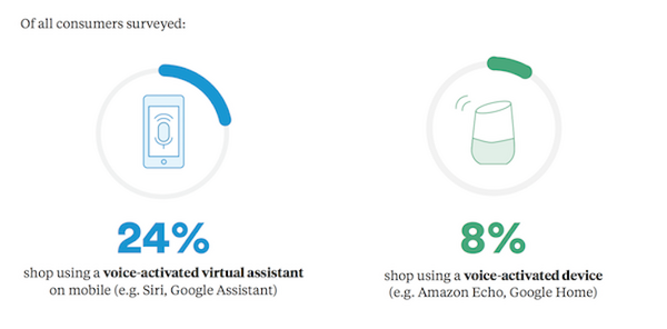 オンラインコマース利用者の24%がスマートフォンのAI音声アシスタントを使って買い物を行うと回答。