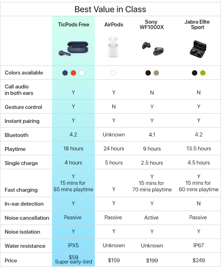価格はスーパーアーリーバードで59ドル、アーリーバードで79ドル、一般販売で129ドルとなっている。一方のAirPodsは159ドルなので、価格差はかなりあるといえる。