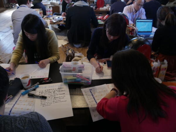 そして、盛りだくさんのインプットタイムの後、色とりどりのイラストでアイデアを書き上げていく参加者たち。