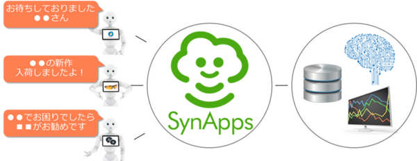 ロボットが発話する内容、商品コンテンツ、レコメンデーション内容及び、ロボット複数台対応は、ヘッドウォータースが運営するクラウドロボティクスサービス「SynApps(シナップス)」で一括管理しており、Microsoft Azure のAI機能である 「Cognitive Services」の「Bing Speech API」を活用することで英語音声での発話を実現し、Azure IoTHubを活用する事で、モバイルとロボットのデータ連携し、外国人客がどんな「ジャパン・カルチャー」に興味があるかなどのデータ分析する事も可能だ。