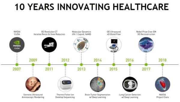 2017年11月26日 、GEヘルスケアとNVIDIAは、全世界で50万台にのぼるGEヘルスケアの画像診断装置に最も高度な人工知能(AI)を導入し、ヘルスケアデータの処理速度を加速させることを目的として、10年間のパートナーシップを締結することを発表しています。(GEのプレス発表)