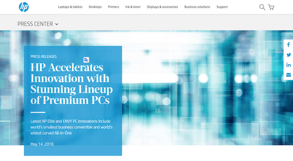 2018年5月14日に出されたプレスリリースによれば、「HP ENVY Curved AiO 34」という機種にAlexaが搭載される。AiOという名称はオールインワンを意味するモデルで、曲面の34インチディスプレイを搭載した高級モデルだ。