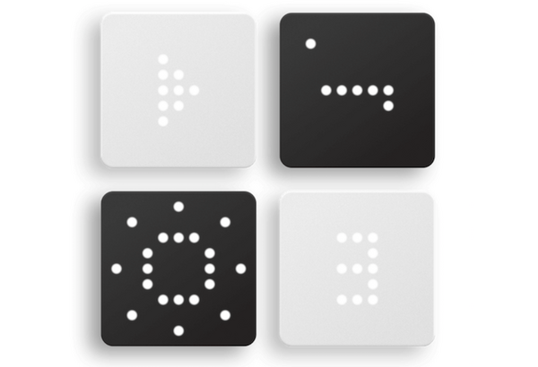 「AIR Satellite」はバッテリーで駆動する小型デバイス。マイク搭載かつ、表面にはLEDのドット表示で様々な状態を表すことができ、タッチも検知する仕組みを持つ。このハードウェアにより、音声制御だけでなく、スワイプやタップなどマルチモーダルな操作が可能になっている。部屋の壁にこのデバイスを貼って使うイメージとなるが、LEDの表示もセンスが良く、インテリアに馴染みそうだ。