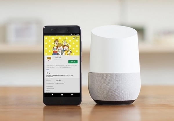 Googleアシスタント対応で、スマートフォンやタブレットであれば、Android OSとiOS環境で利用できる。また、スマートスピーカー「Google Home」シリーズでの利用もおすすめだ。Google Homeに向かって「OK、Google、こども英会話と話したい」と言うだけでアプリを開始することができる。