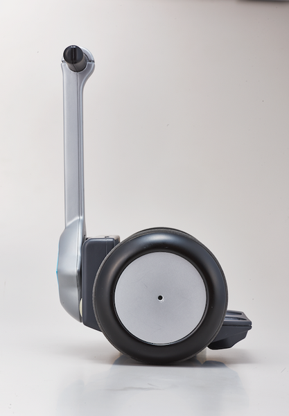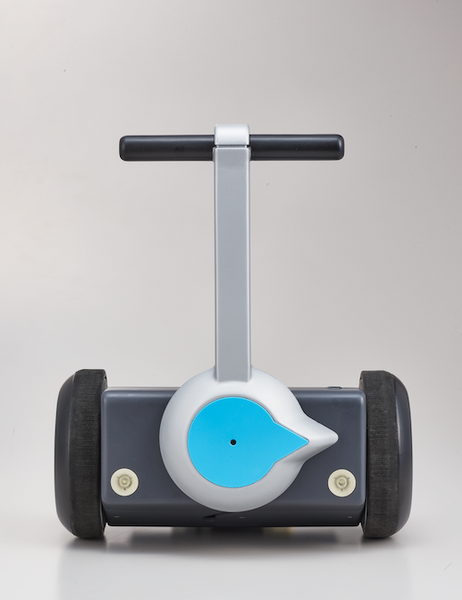 ロビライドに乗り込んでロビがハンドル部分についたボタンを押すと、底面の可動スタンドが格納され、その瞬間から、ロビライドは倒れないように、前後にバランスを取るようになる。
