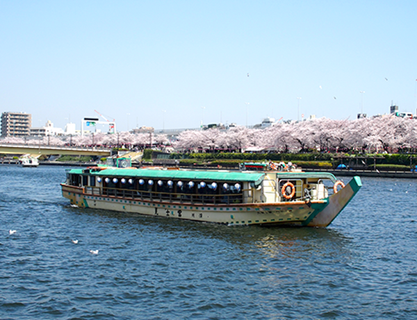 屋形船を使用し、芝浦工大学生とロボットによる日本語・英語ガイドあり