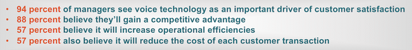また企業の管理者は音声技術の採用が、顧客満足向上、競合優位性向上、オペレーション効率化、顧客対応コスト削減に繋げられることを期待していると回答している。