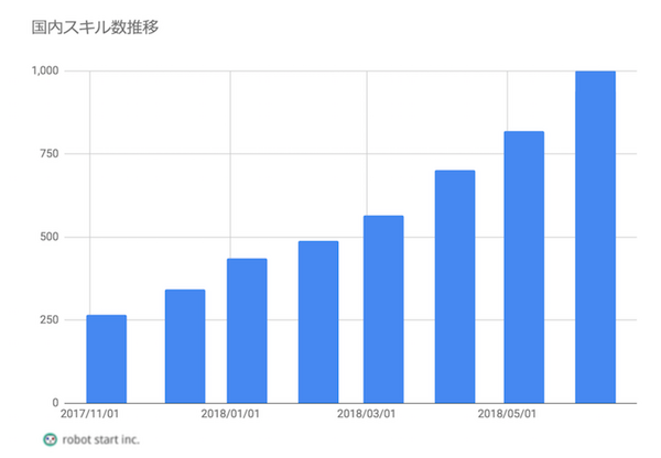 2018年6月21日本日、国内のAmazon Alexaスキル数が1,000を超えた。