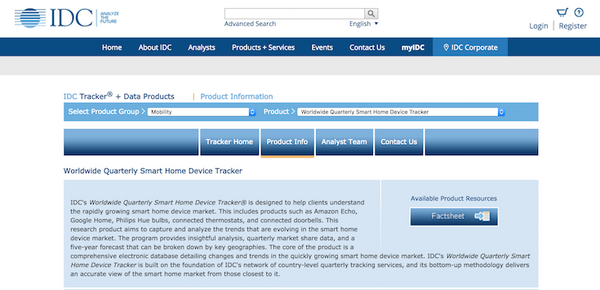 2018年6月21日、米国市場調査会社のIDCが急成長中のスマートホームデバイス市場の予測資料を発表した。