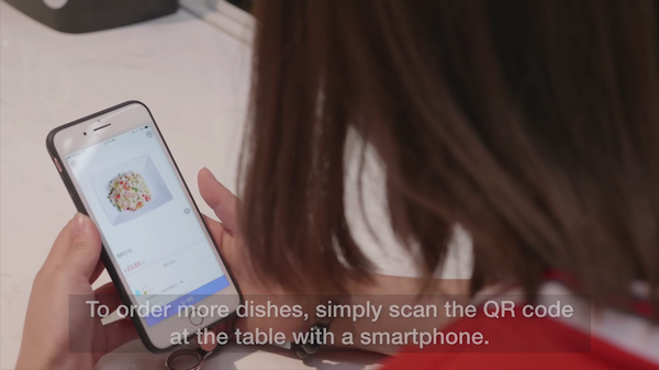 お客は併設のレストラン「Robot.He」に出向き、席に座ると、スマホ画面から、サイドメニューやお米などを選ぶことができる。