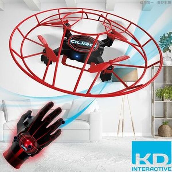 「Aura」の使い方は簡単で、専用のグローブを手にはめて動かすだけで操作が可能。前後左右の動きはもちろんのこと、手のひらを下に向けたまま、高さを上下すると高度が変化する。さらに360度クルっと回転するフリップや垂直回転なども手を動かすだけで可能。このドローンの価格は約1万円。アマゾンで購入することができる(7/6時点で40%オフで販売されている)。