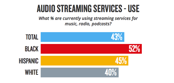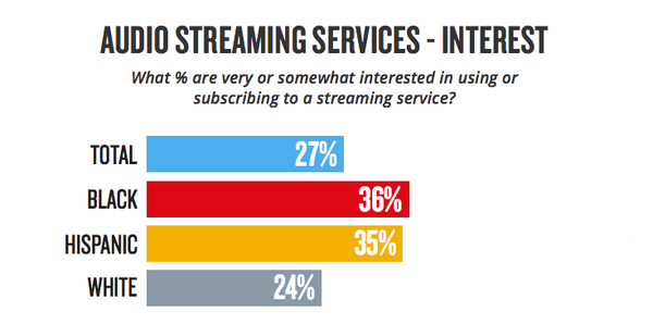 音楽ストリーミングサービスに対する興味はブラック・ヒスパニックがホワイトを上回る結果となった。