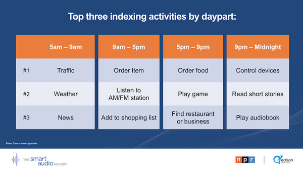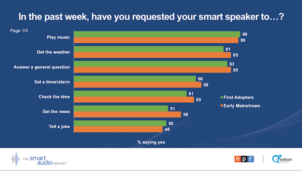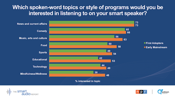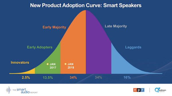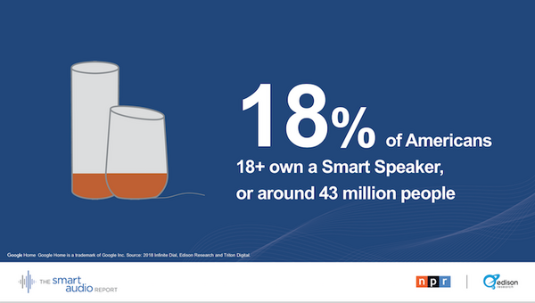 2018年7月18日、NPRとEdison Researchがアメリカでのスマートスピーカー利用調査を行い、「The Smart Audio Report, Spring 2018」として発表した。
