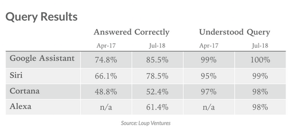 2018年7月25日、Loup Venturesが発表したAI音声アシスタントの評価テスト結果のレポートを紹介する。
