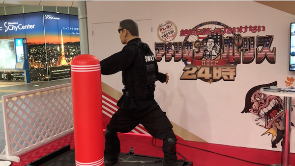 その中で異彩を放っていたのが、「衝撃ビンタマシーン 蝶野くん」。昨年末のガキ使で登場したマシーンです。スタッフの方に頼むとビンタのデモを行なってくれます。