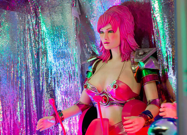 これがロボットレストランのロボ子。施設の象徴としてショーに出演、またアドトラックの広告塔としても活躍している。近年は場所を店頭に移して記念撮影に対応してきた。