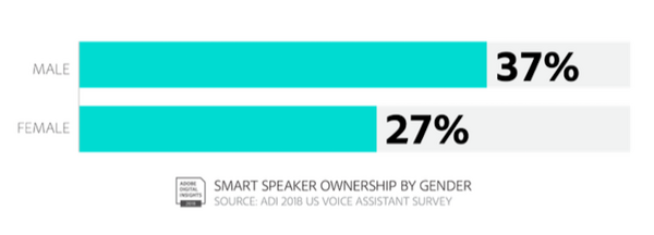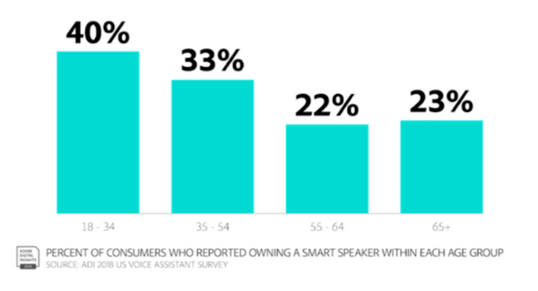 男女比率は男性の方が高い。年齢は18~34歳が最多。次いで35~54歳と続く。若い男性がスマートスピーカーを好んで所有している傾向にある。