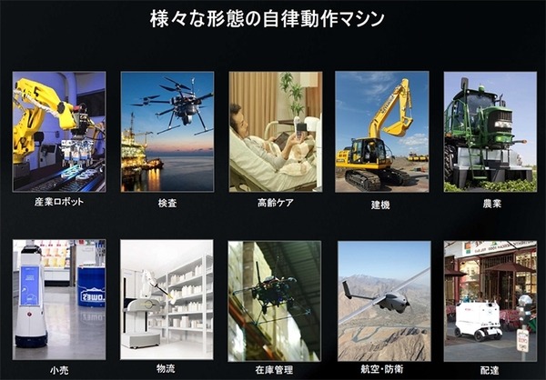 自律型ロボティクスは運搬やモビリティだけでなく、産業用ロボット、農業、建機、検査、高齢者ケア、小売り、在庫管理など、さまざまな分野で求められている。