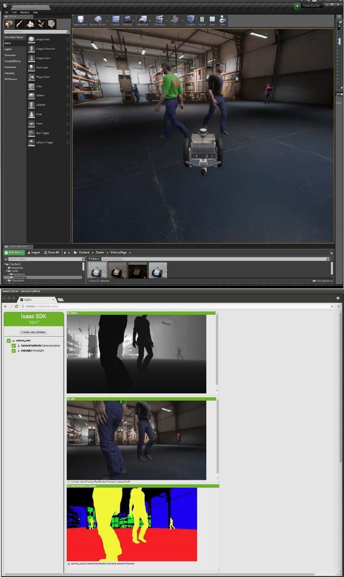 カーターの知能化で重要なのは、自律運転と同様の技術でルートを走行するとともに障害物を検知して避け、無事に目的地に着くことだ。自動運転で最も大きな課題のひとつが、さまざまな障害物やシーンをAIに機械学習させること。その学習を高速化するのが「ISAAC」だ。