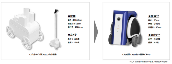 共同開発を行なったロボットは、カメラ付きの白色の四輪駆動AIロボットで、遠隔地からスマートフォンでのリモート操作が可能。また、このロボットには、「事前に登録した人物」以外の顔はマスク処理するプライバシー保護機能や、「事前に登録されている人物」を検知した際にプロフィールを表示しビデオ通話が可能となる機能など、オフィス見学や物件内覧などリモート用途で活用しやすい設計がされている。