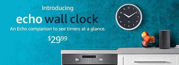 Echo Wall ClockはAlexa対応のマイク搭載壁掛け時計。Echoデバイスと連携して使い、セットしたタイマーを、Echo Wall Clockで残り時間を表示することができる。価格は29.99ドル。まだ発売されておらず、メール登録のみ可能。