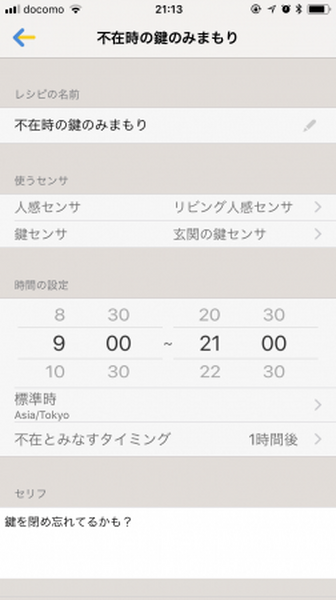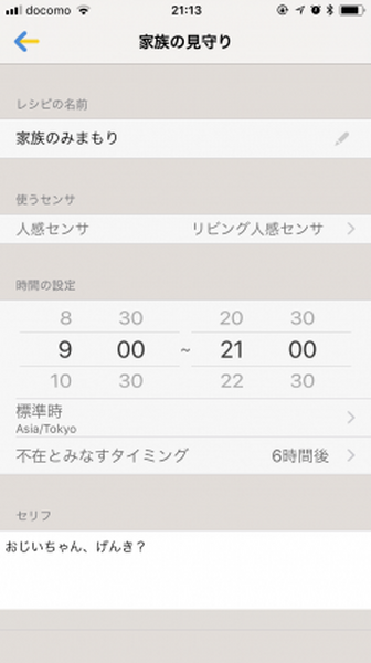 「センサでみまもり」の発話内容はアプリで設定することができる。