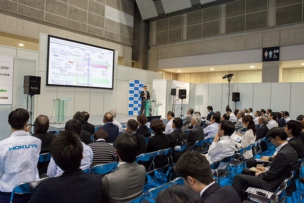 講演会場のステージは展示会場の中に2つある。ステージプログラムの予定はこちら