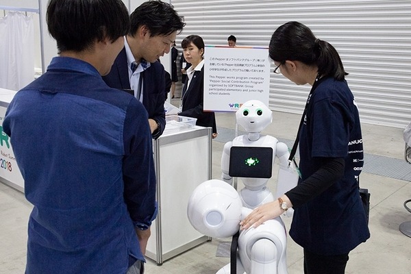 入口にPepper。小中学生の子ども達が作ったアプリで稼働している
