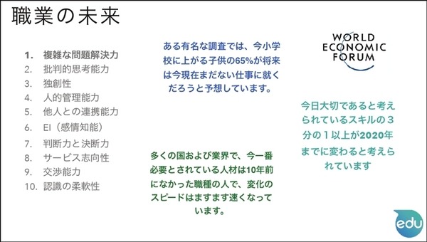 いまの小学生が社会に出る頃には65%が今まだ存在していない職種に就くことになる。